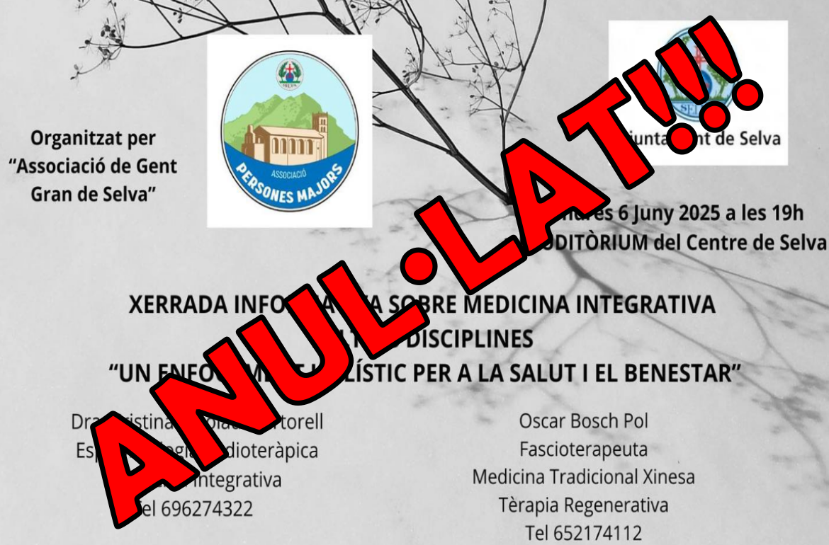 anullada la xerrada informativa sobre medicina integrativa i altres disciplines