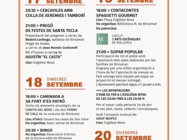 Col·locada la bandera, i després dels rellevants crits de "Visca Santa Tecla i Visca Biniamar", tota la plaça entonarà l'himne de la nostra patrona. L'acte acabarà amb una ballada popular i la tradicional torrada de botifarrons.