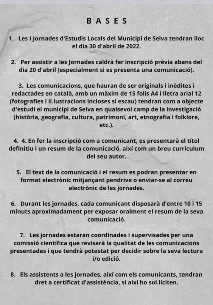 I JORNADES D'ESTUDIS LOCALS DEL MUNICIPI DE SELVA, 30 d'abril