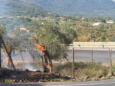 Ahir es va declarar un incendi a sa volta de Cas Jurat a la carretera de Selva a Caimari.