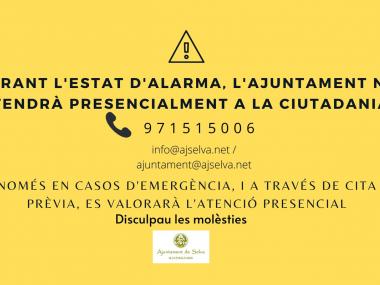 DURANT L'ESTAT D'ALARMA, L'AJUNTAMENT NO ATENDRÀ PRESENCIALMENT A LA CIUTADANIA