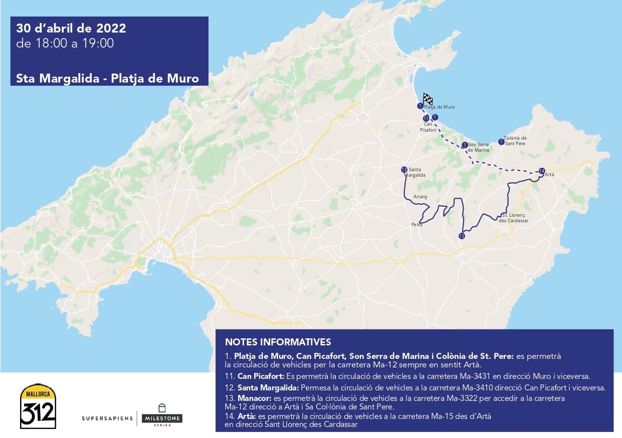 Amb motiu d'aquesta cursa, algunes carreteres de Mallorca romandran tallades‼️