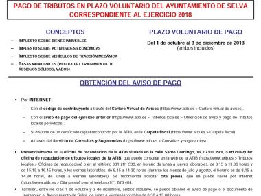 Pagament de tributs en termini voluntàri de l'Ajuntament de Selva corresponent a l'exercici 2018.
