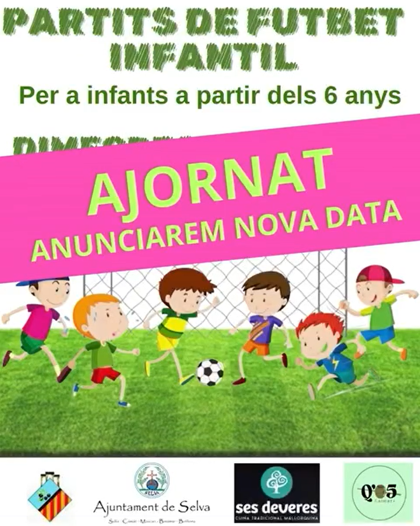 📣 AJORNATPER CAUSES METEOROLÒGIQUES ADVERSESANUNCIAREM NOVA DATAPARTITS DE FUTBET INFANTILPer a infants a partir dels 6 anys.