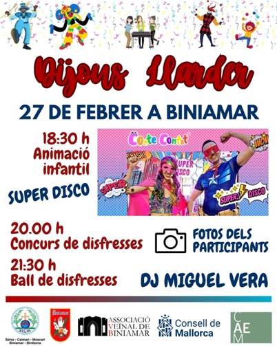 El pròxim 27 de febrer de 2025, a les 18 h, la Plaça de Biniamar es convertirà en un espai ple de música i diversió amb l’activitat Animació Súper Disco, a càrrec de Nabil Canyelles Fernández.