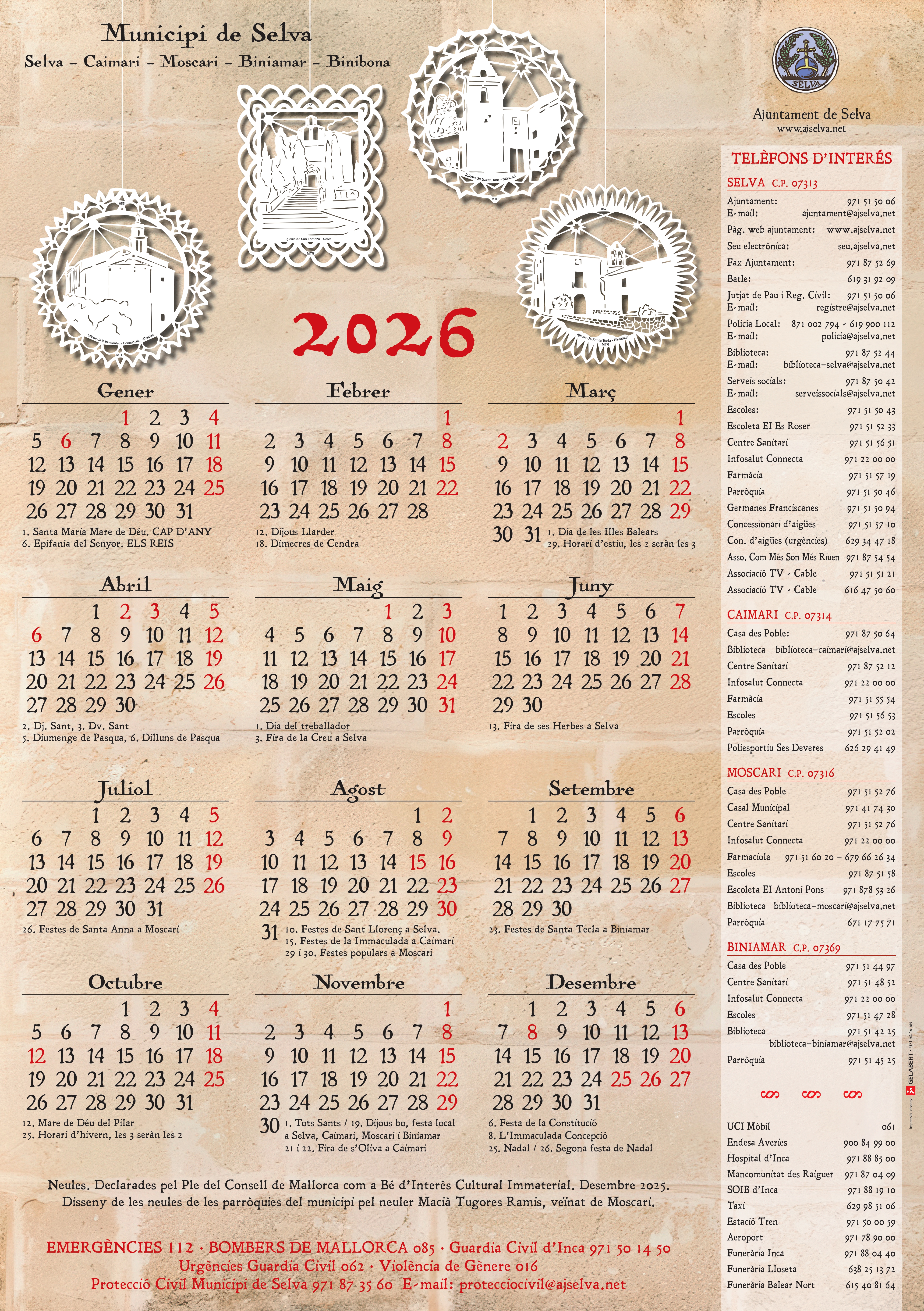 L'Ajuntament de Selva presenta el Calendari 2026.