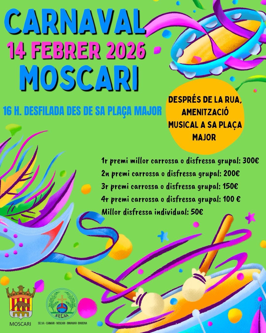 🥳 16.00 H DESFILADA DES DE SA PLAÇA MAJOR
