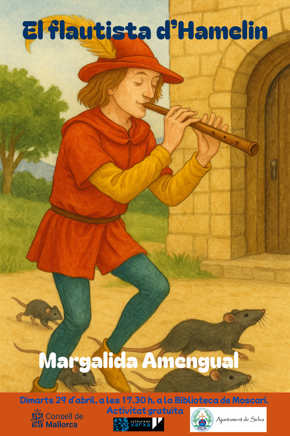 El pròxim 29 d’abril de 2025, a les 17.30 h, la Biblioteca Municipal de Moscari (c/ des Pou, 4) acollirà el contacontes El flautista d’Hamelin, a càrrec de Margalida Amengual Balaguer.