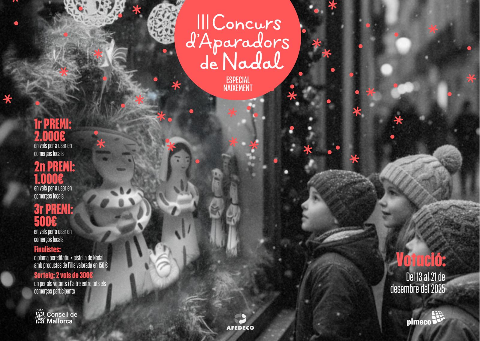 El Consell de Mallorca, Afedeco i Pimeco presenten el III Concurs d'Aparadors de Nadal «Especial Naixement» per acréixer l'esperit nadalenc als carrers de l'illa.