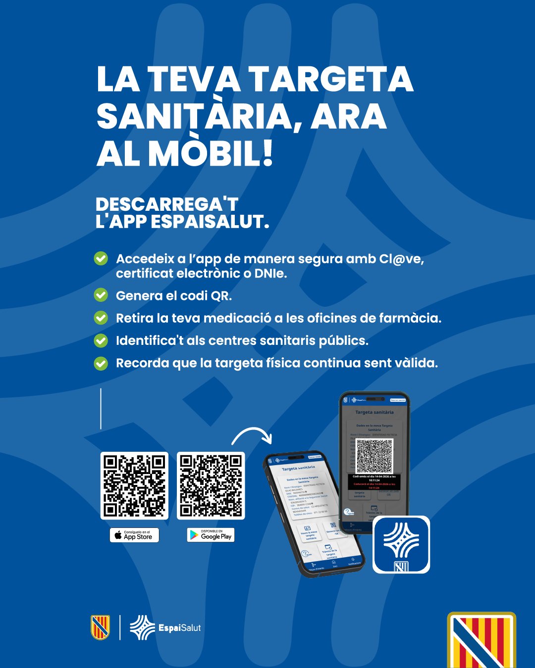 La Targeta Sanitària Virtual et permet dur la targeta sanitària al mòbil en format QR amb l'app EspaiSalut.