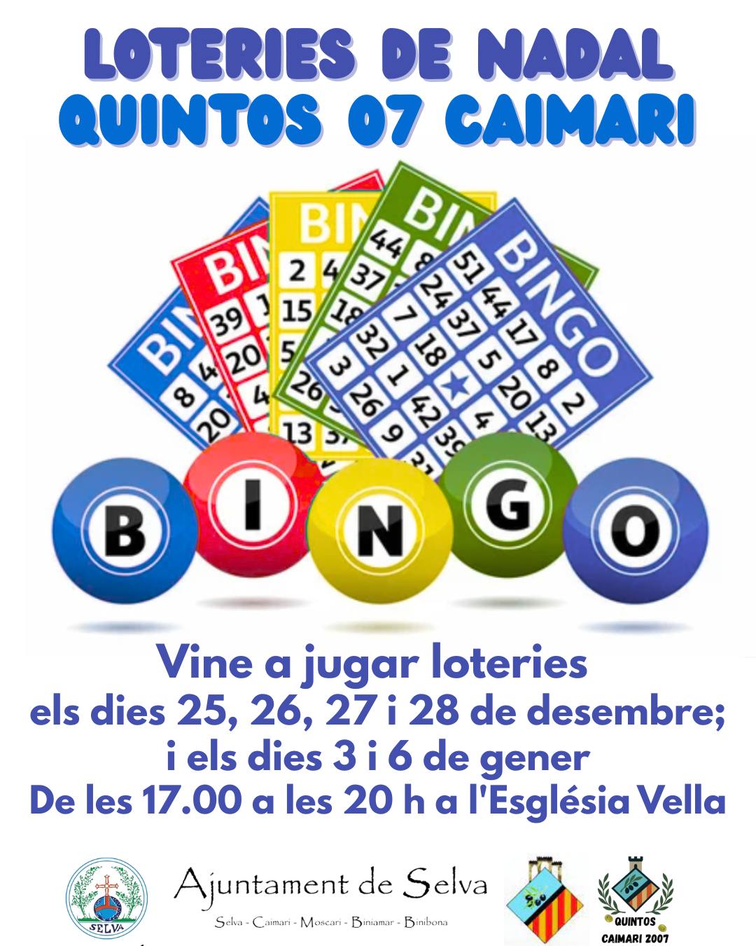 Vine a jugar loteries els dies 25, 26, 27 i 28 de desembre; i els dies 3 i 6 de gener.