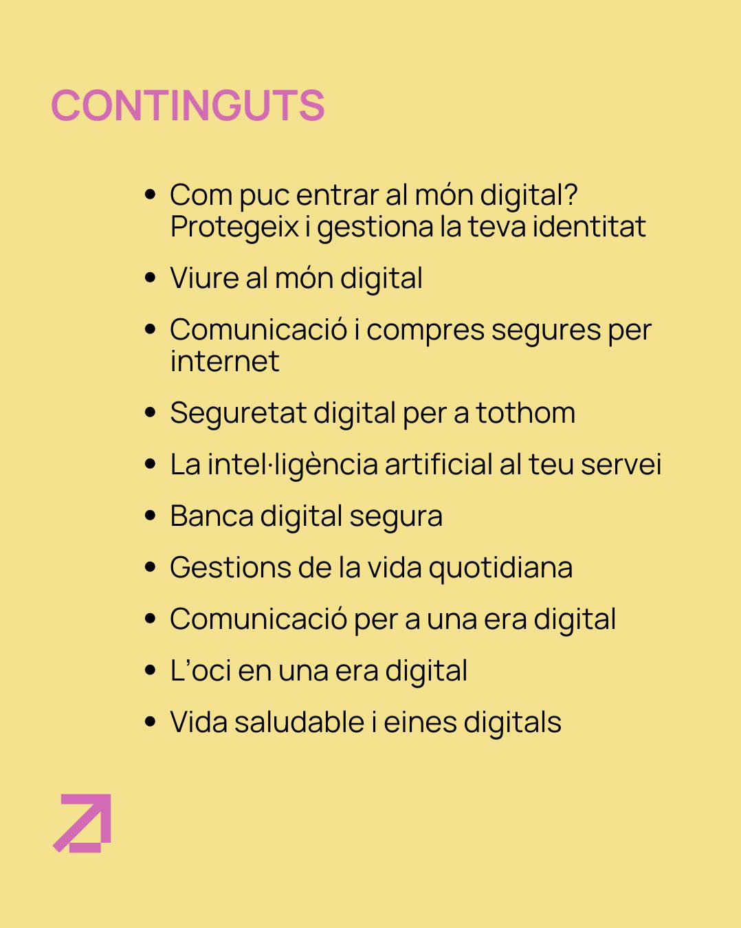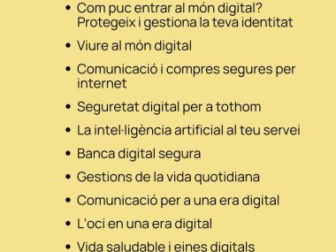 A través d'aquesta formació, els assistents podran aprendre des de conceptes essencials del món digital fins a ciberseguretat i intel·ligència artificial, adquirint eines pràctiques per a moure's amb confiança en l'entorn digital.