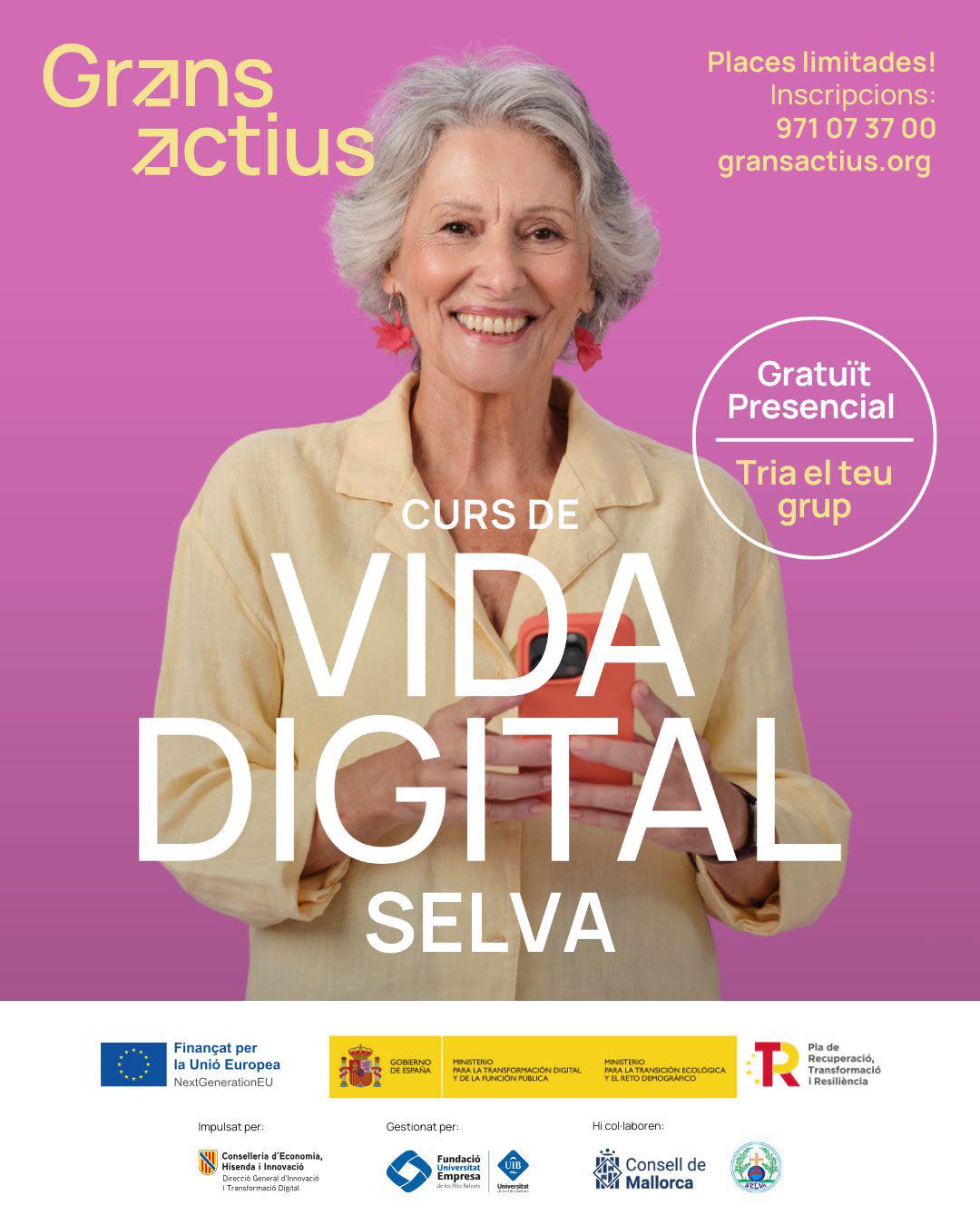 A partir del 22 de setembre, Selva acollirà el programa Grans Actius amb el Curs de Vida Digital, una iniciativa formativa totalment gratuïta adreçada a persones majors de 55 anys per a reduir la bretxa digital i fomentar la seva participació en el món digital.