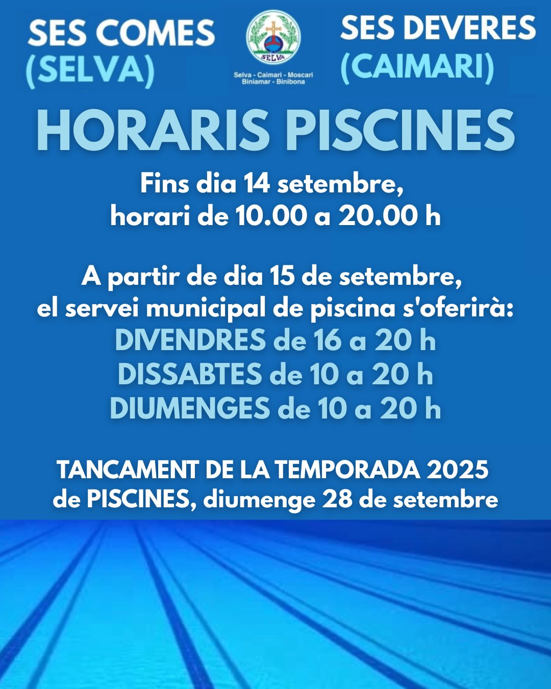A partir de dia 15 de setembre, el servei municipal de piscina s'oferirà: