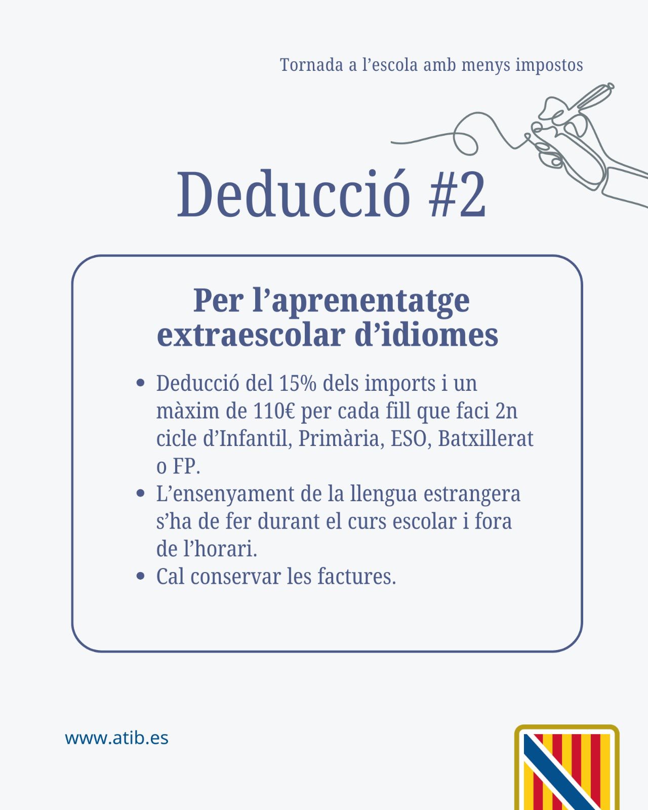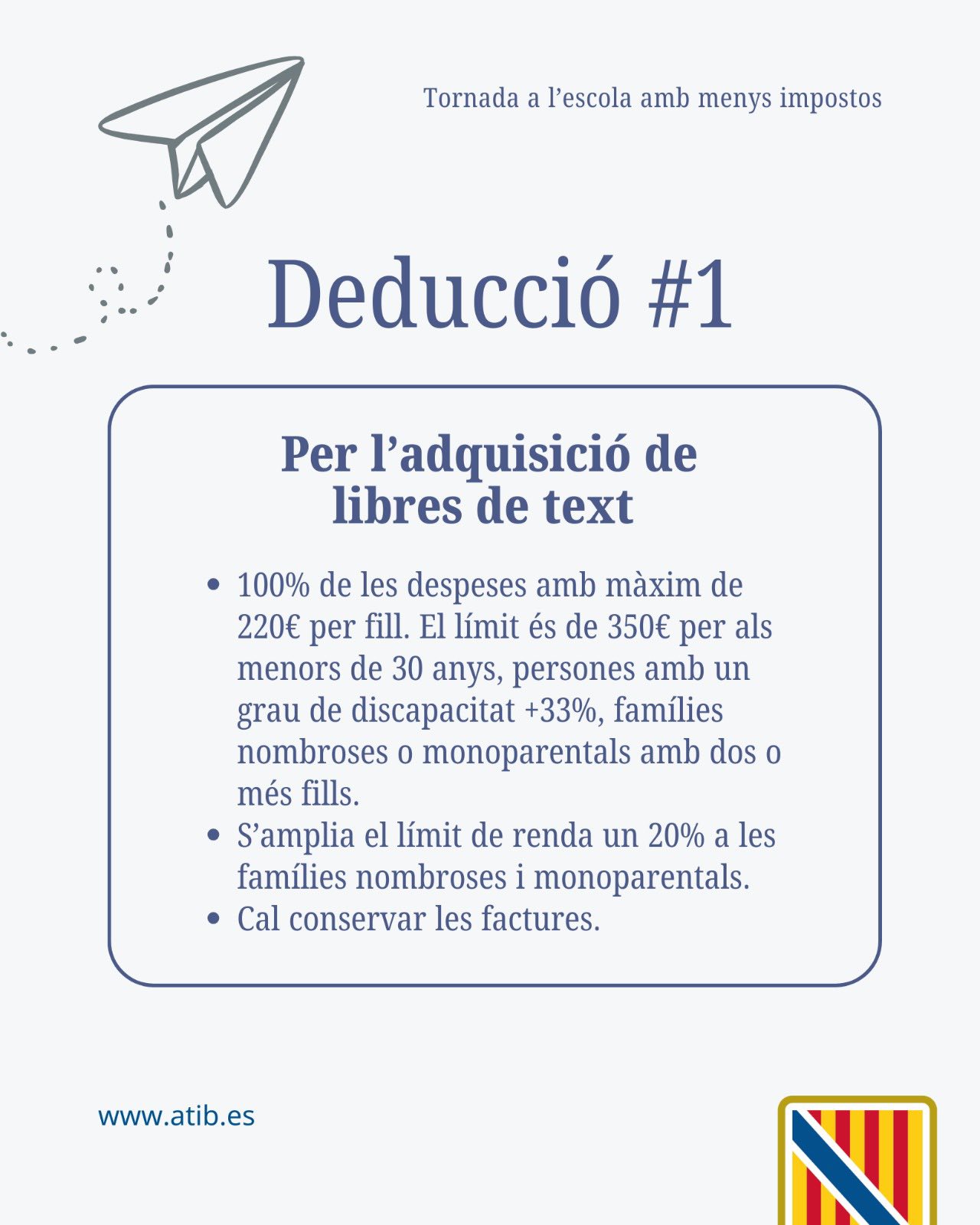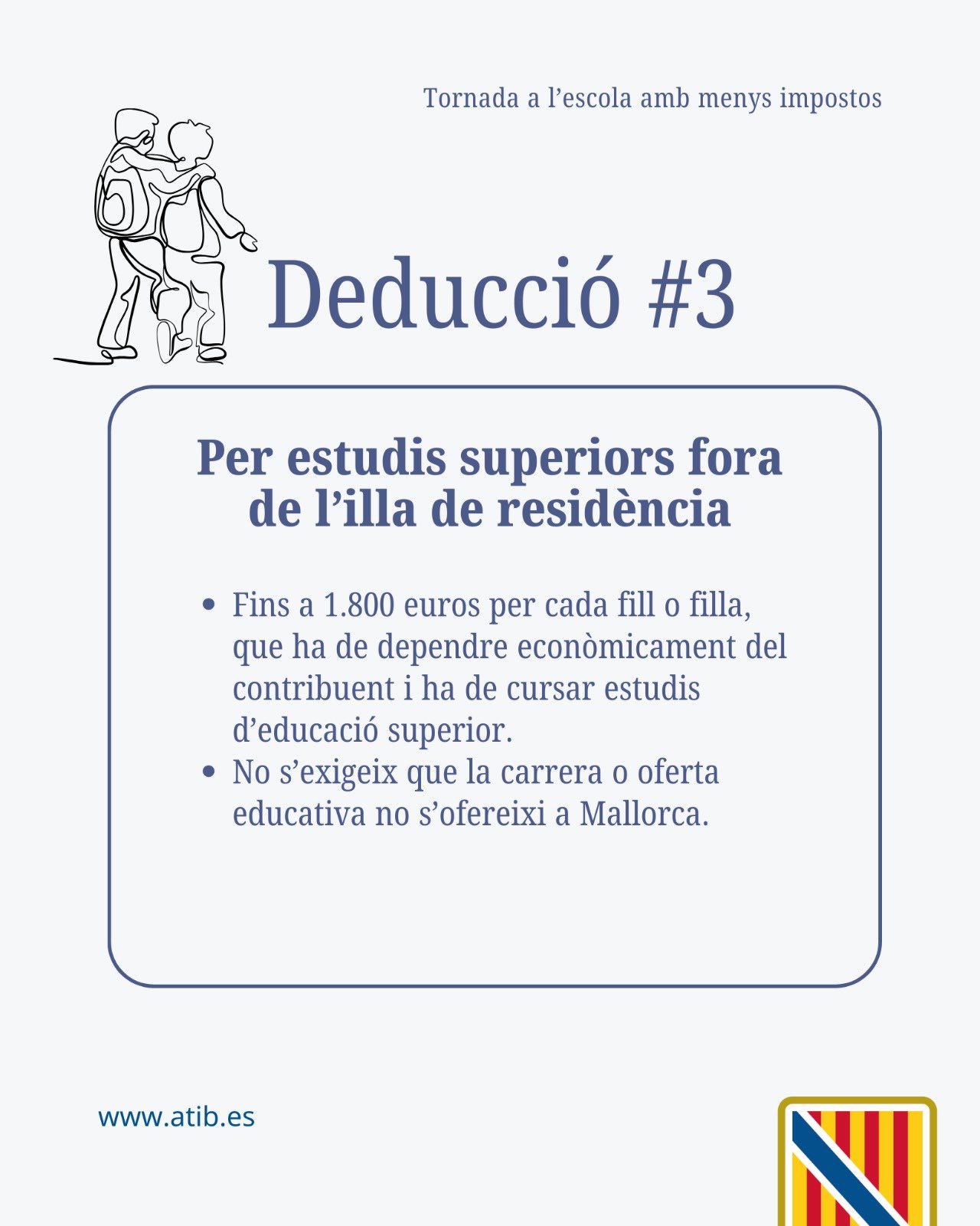 📚👩🏻🎓 Tornada a l'escola amb més i millors deduccions per l'adquisició de libres de text, per despeses d'aprenentatge extraescolar d'idiomes estrangers, per cursar estudis superiors fora de l'illa de residència, per conciliació i per ocupar places de difícil cobertura a les Illes Balears.
