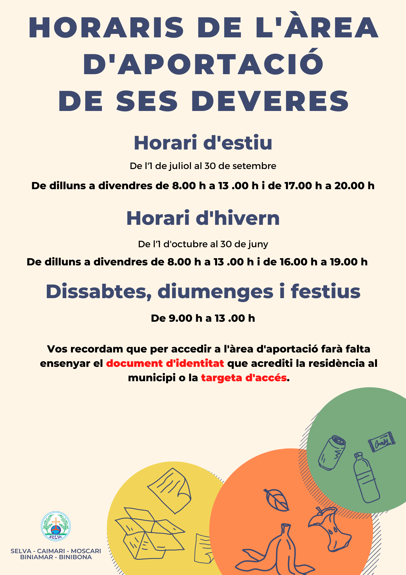 Horari d'obertura de l'àrea d'aportació Selva Recollida selectiva Documentos Punt verd municipi de Selva Imprimir